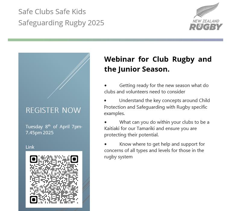 Webinar for Club Rugby and the Junior Season. 7pm,  8th of April 2025Webinar