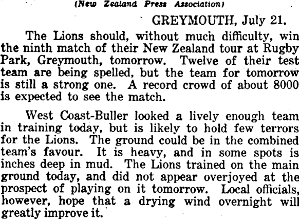 Highest attendance 8,000 West Coast–Buller v British Isles, 1959